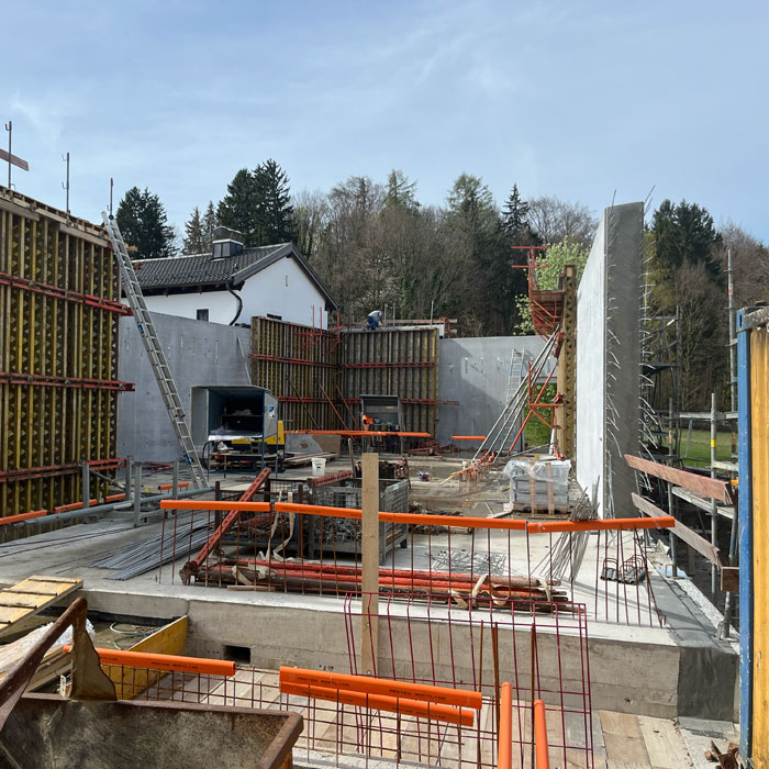 Blick auf die Baustelle – So wird das neue Museum aussehen Für das COMU Carl Orff Museum wird der Bestand aus Wohn- und Arbeitshaus des Komponisten durch einen Neubau ergänzt. Entworfen wurde dieser vom Münchner Architekturbüro Meck Architekten. Ausführendes Bauunternehmen ist die Firma Lutzenberger, die einen sehr erfahrenen Bautrupp nach Dießen geschickt hat. Die anspruchsvolle Architektur wird mit innovativem Ultraleichtbeton ausgeführt, der eine optimale Isolierung ermöglicht. Für Nachhaltigkeit werden auch Solarpaneele auf dem Museumsdach und eine Wärmepumpe sorgen.Seit Sommer 2023 entsteht der Rohbau. Inzwischen stehen alle Wände des neuen Gebäudes und der besonders eindrucksvolle Sonderausstellungsraum hat sein Tonnendach bekommen. Man bekommt schon einen ersten Eindruck wie das Gebäude aussehen wird. Am 129. Geburtstag von Carl Orff (10.07.1895) werden wir das Richtfest feiern. Die Fertigstellung des Gebäudes können wir kaum erwarten. Your browser does not support the video tag. Rohbau Vogelperspektive - COMU Baustellenbild COMU Artikel in News • 1. Mai 2024 Teilen Twitter Facebook LinkedIn